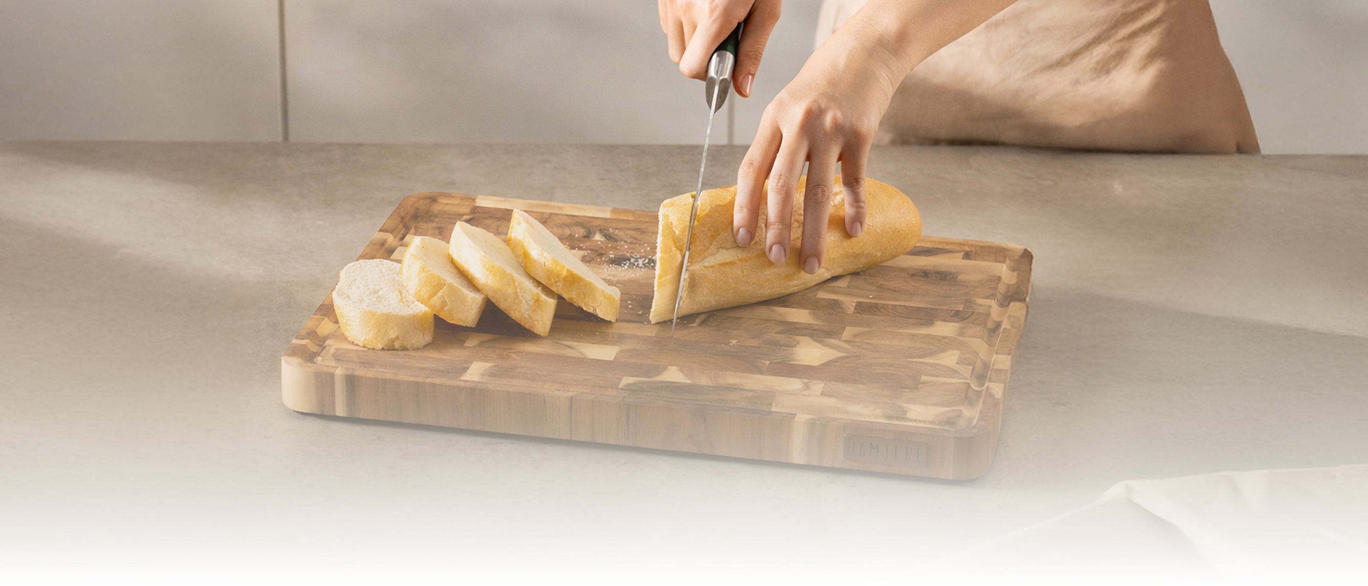 Deze set is gemaakt van premium acacia kopshout en heeft met 2,5 cm een robuuste dikte die je direct ziet en voelt in dagelijks gebruik. In combinatie met een hoogwaardige, voedselveilige olie en verfijnde afwerking voelen de planken extreem glad aan en zijn ze uitstekend beschermd tegen vocht, vlekken en dagelijks gebruik. Dat geeft niet alleen een luxe uitstraling, maar helpt ook om krassen minder zichtbaar te maken en de planken na gebruik makkelijk af te wassen.